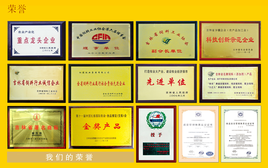 集團先后被評為吉林省農業產業化重點龍頭企業、牧業生產先進企業、吉林省飼料行業誠信企業、吉林省科技創新示范企業、吉林省科技創新先進企業、吉林省飼料協會會長單位、中國飼料工業協會理事單位,“和農”品牌榮獲“吉林省名牌飼料產品”與“吉林名牌”稱號、吉林省著名商標。創業先后通過了“ISO9001:2008質量管理認證”和“HACCP食品安全認證和農乳豬奶料、保育豬配合飼料、蛋王飼料連年榮獲中國農業食品博覽會金獎。